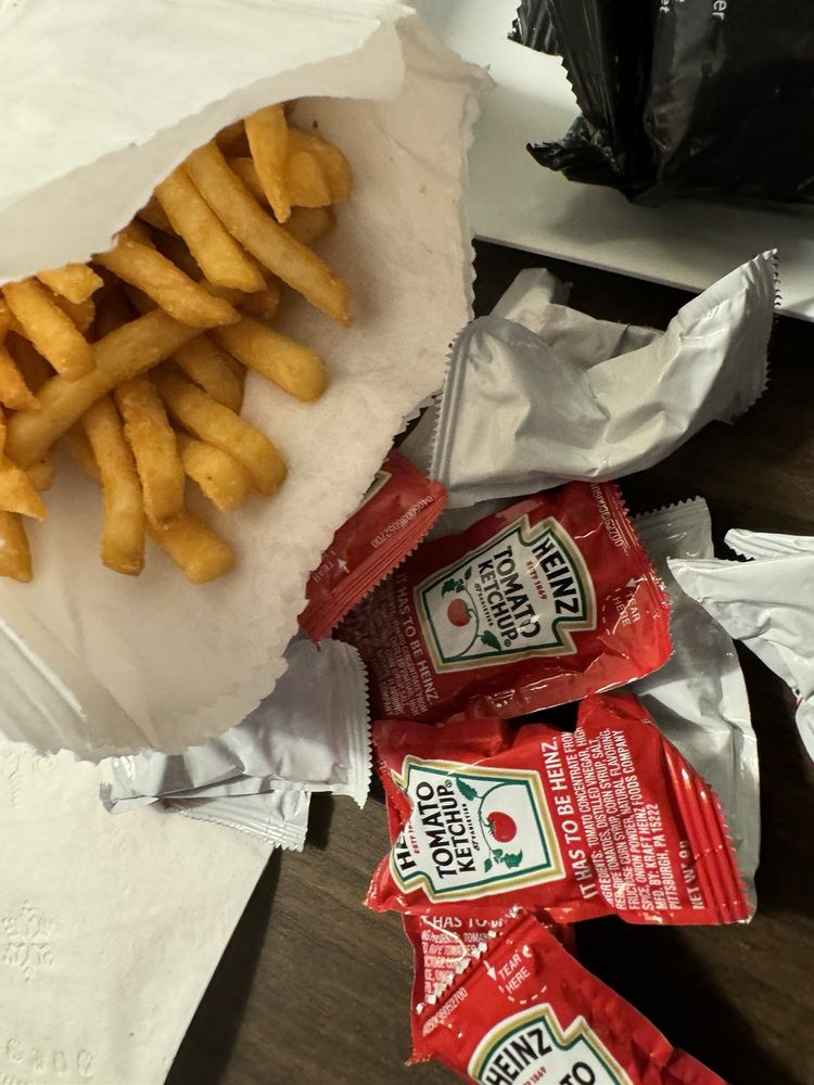 Classic, crispy, seasoned french fries served with a side of ketchup.