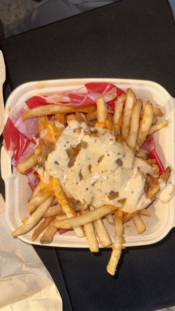 Crispy, seasoned french fries topped with cheddar cheese sauce, sweet caramelized onions, and our housemade Signature Sauce, served with a side of ketchup.